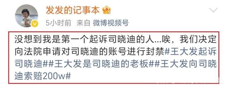 6. 王大发开篇即表明身份:自己是司晓迪的签约负责人,同时也是首位对她提起法律诉讼的人。他还透露已向法院提交申请,要求封禁司晓迪个人社交媒体账号的使用权限。